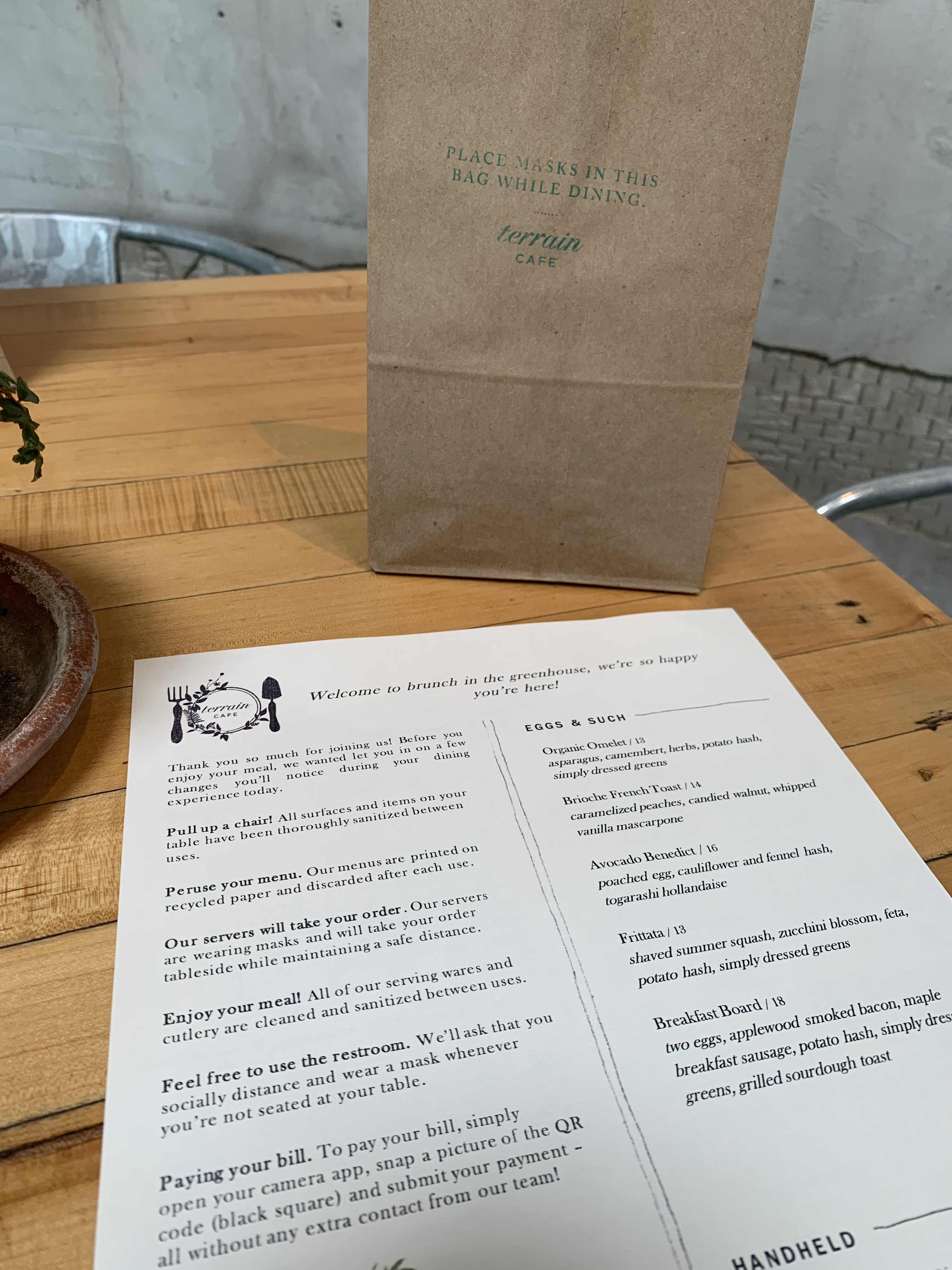 It’s taken me a bit of time to feel comfortable venturing out again. Terrain does a great job at outlining the steps they are taking to keep their customers safe. You will need a reservation to eat here, which you can easily make online via OpenTable. Upon sitting, you are given a paper bag to house your mask while you dine. Also, they have had all the lavender drinks for me to try!